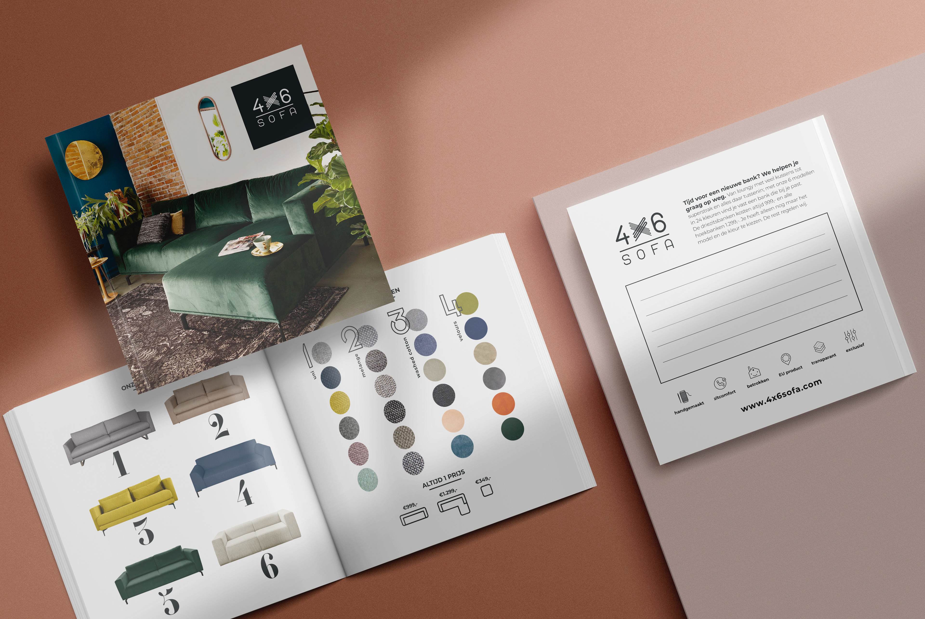 Voor 4X6 Sofa ontwierp ik ook hun folder, waar alle banken, modellen en kleuren instaan.
