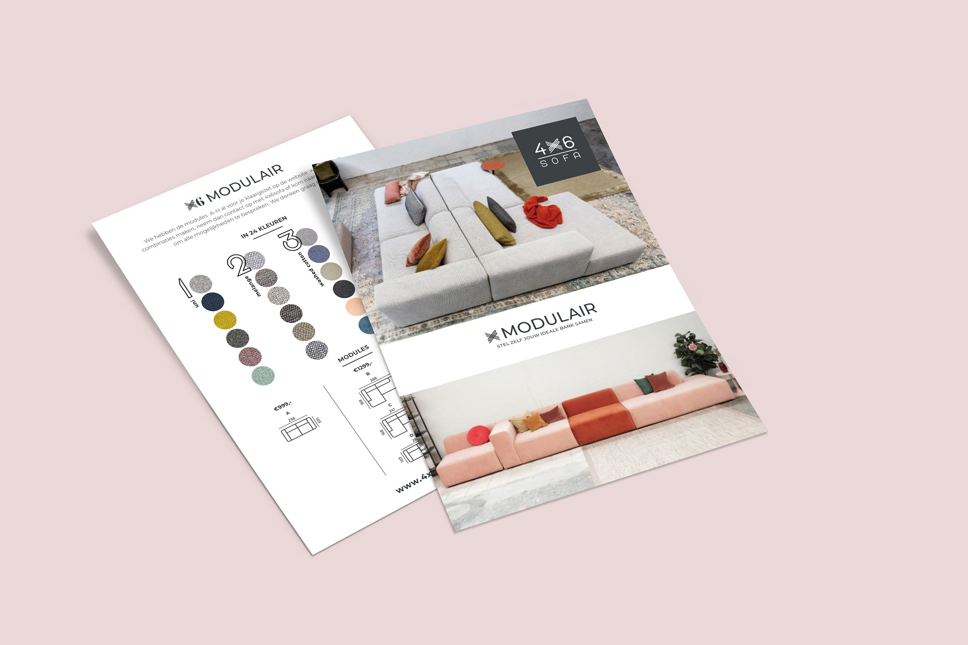 6 modellen - 24 kleuren - vaste prijs, dat is hun brand. Ik ontwierp voor hun een flyer voor een model bank de X modulair
