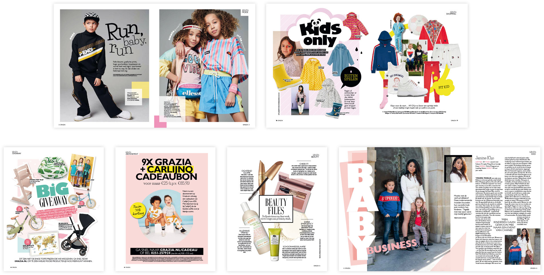 Voor het magazine Grazia, heb ik een aantal kids specials ontworpen. Hieronder een selectie van pagina's.