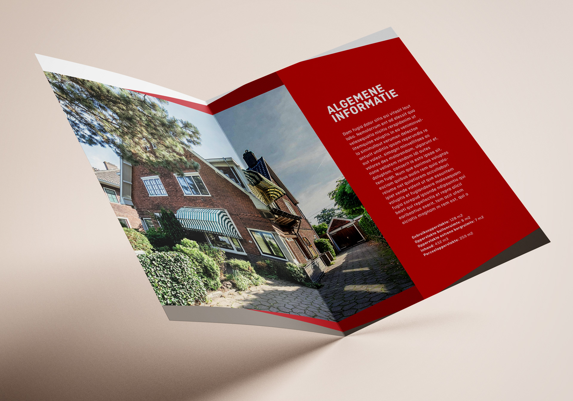 Voor dit makelaars kantoor ontwierp ik hun folder die ze maken voor elk huis die in de verkoop komt.