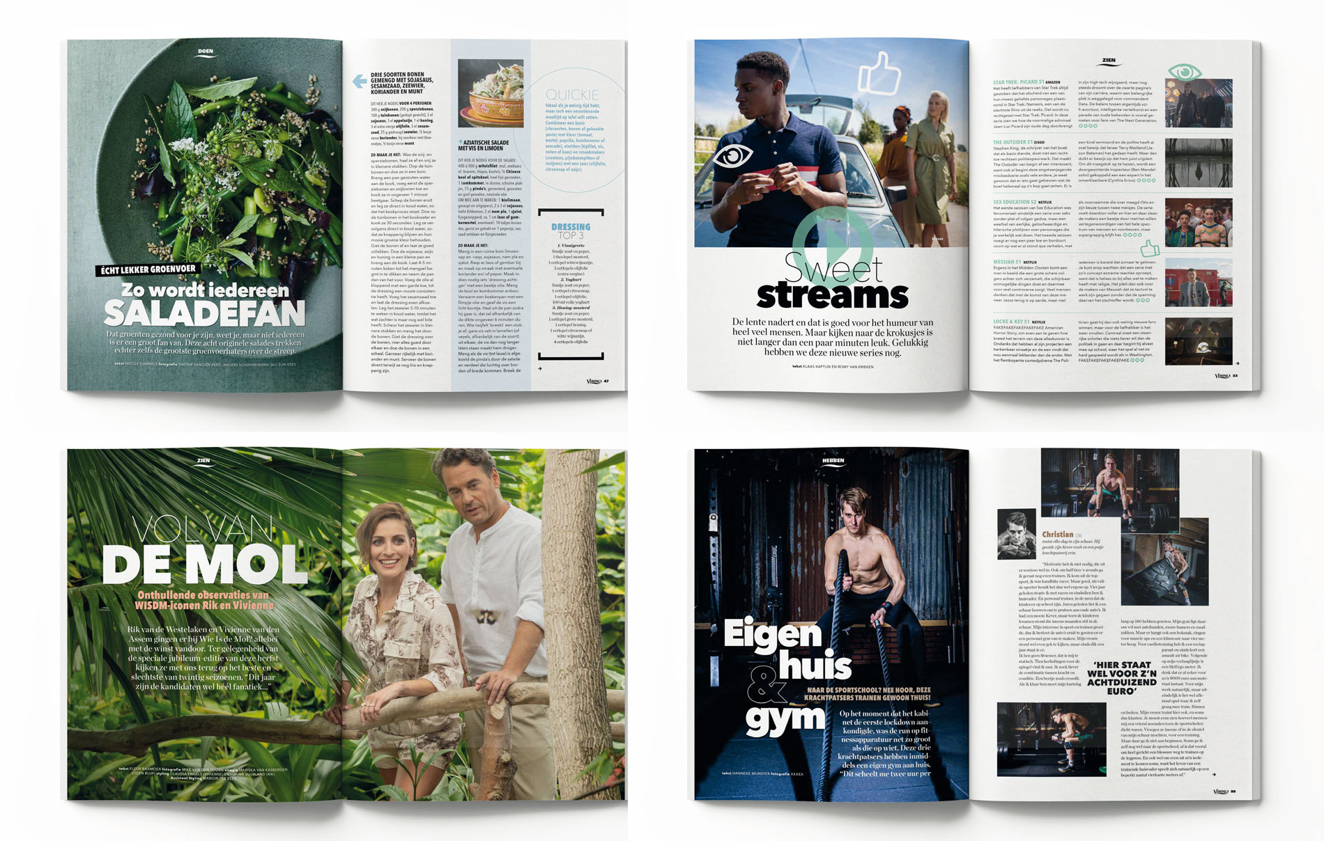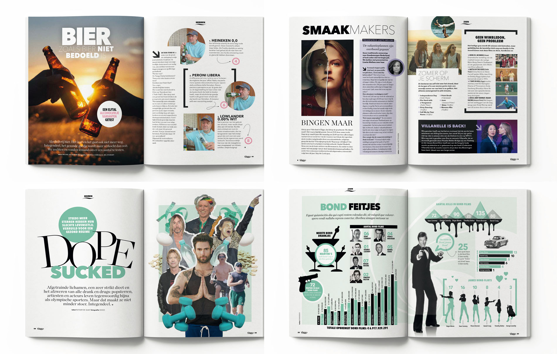 Veronica Magazine geeft 4 x per jaar de Veronica Guide uit. Voor dit magazine ontwierp ik de layout en het logo. Elk kwartaal doe ik de vormgeving. Dit is een selectie van pagina's uit de verschillende edities.